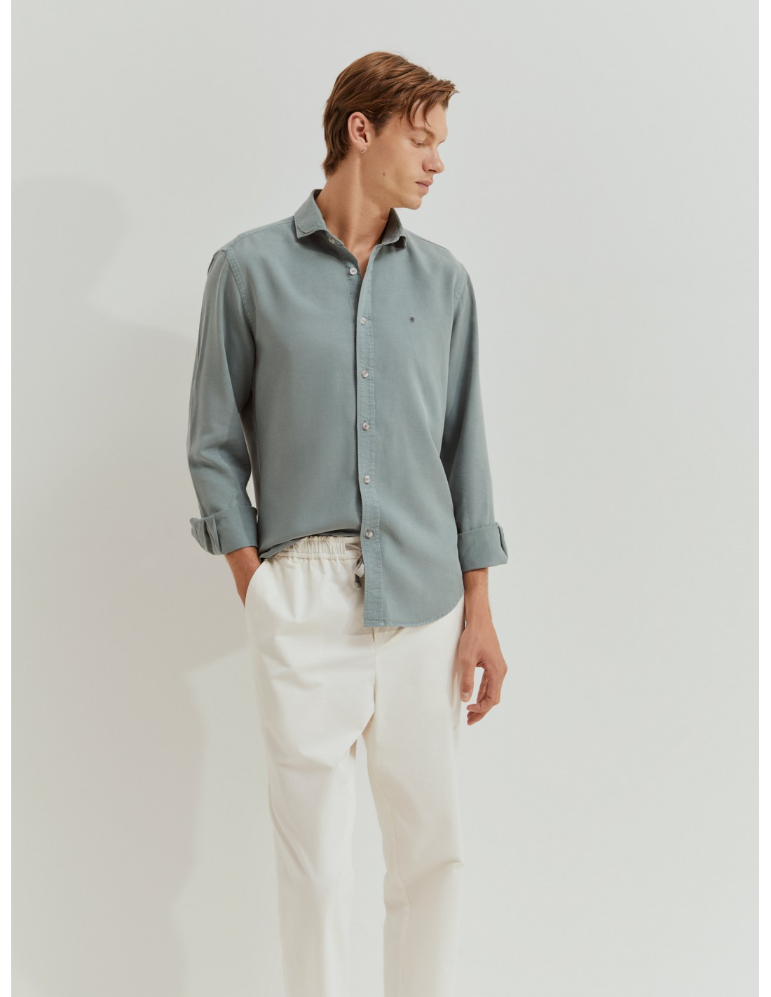 Camisa de manga larga, disponible en varios colores, con cuello italiano y apertura con botones. Detalle de león bordado en contraste en el pecho. Está elaborado con una mezcla de lyocell y lino. Mientras que el lyocell es un material sostenible, ligero y agradable al tacto, el lino le confiere un aspecto más rústico y naturalmente fresco.